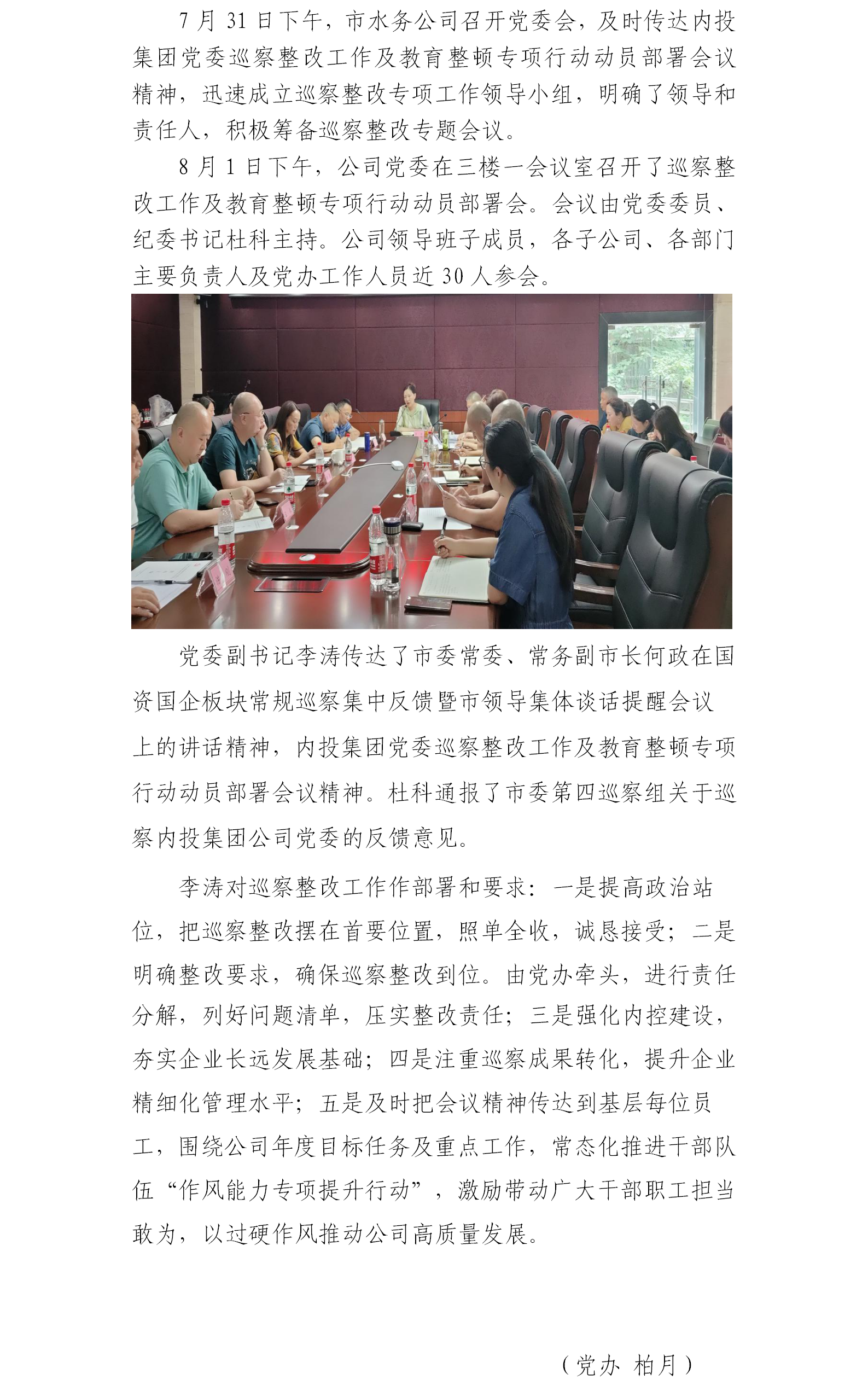 內(nèi)江市水務(wù)有限責(zé)任公司黨委召開(kāi)巡察整改工作暨教育整頓專(zhuān)項(xiàng)行動(dòng)動(dòng)員部署會(huì)