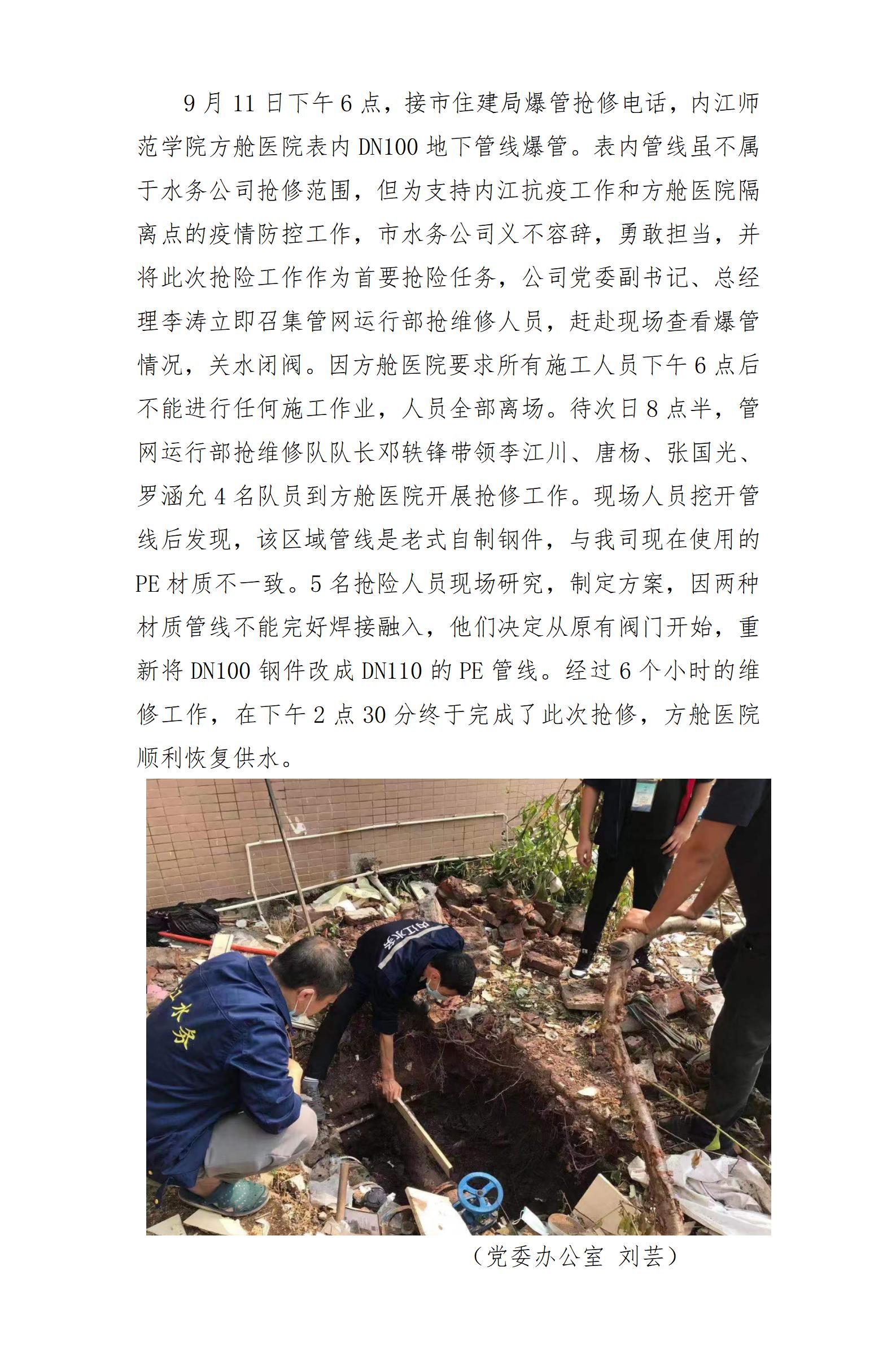 市水務公司支援內江師范學院方艙 醫院搶修表內管線
