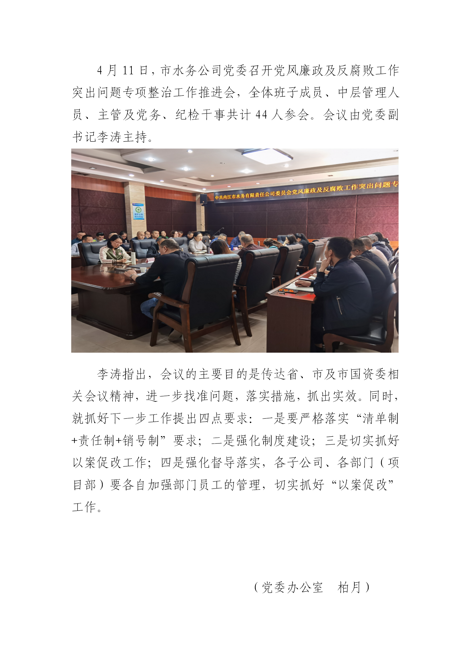 市水務(wù)公司召開黨風(fēng)廉政及反腐敗工作突出問題專項(xiàng)整治工作推進(jìn)會