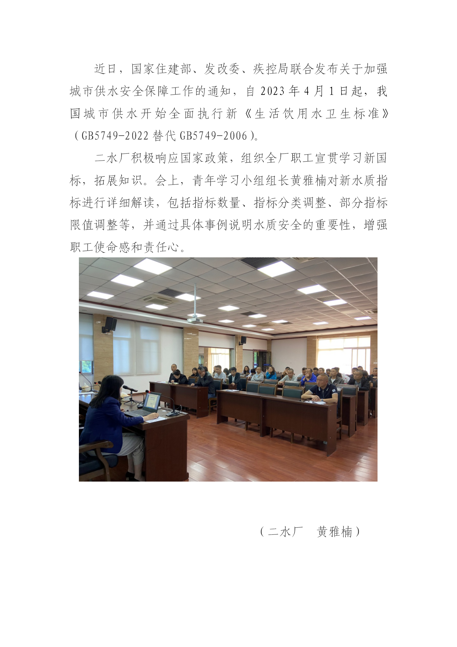 二水廠組織學(xué)習(xí)生活飲用水新國標